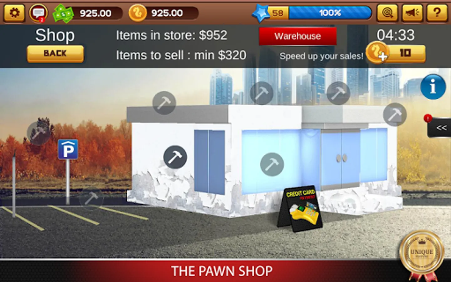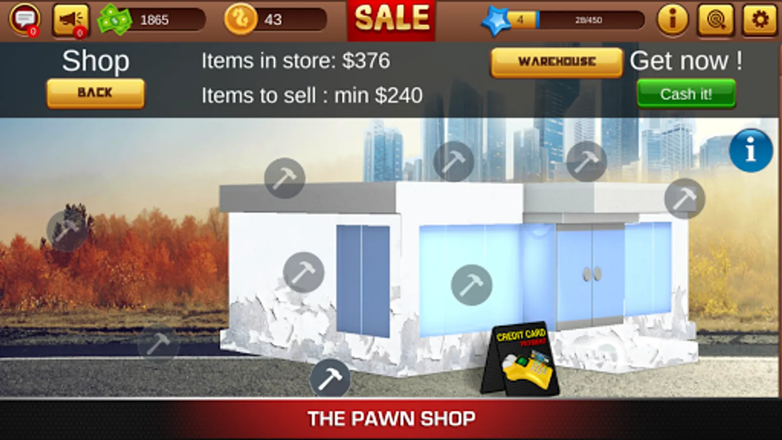 You can sell all items that you had bought in an auction in your own shop. As in real life, it takes time to get your money back. Use all types of upgrades to improve the pawn shop. Expand to sell faster.