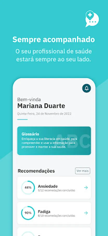 The iGestSaúde app, for use by patients, will be accessible after registration and validation by a health professional and will allow them to access a series of features, including: