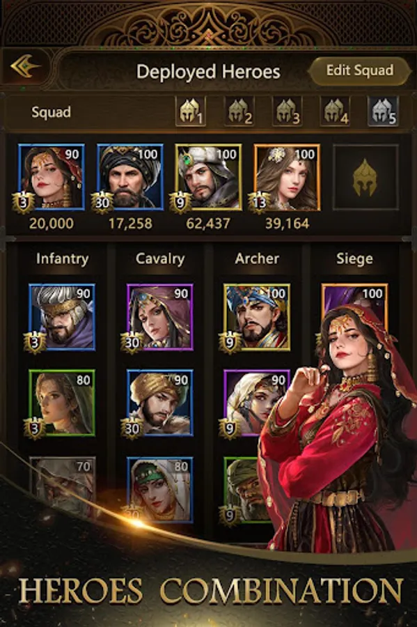 - Different Heroes with unique attributes and powerful skills to lead a variety of Troops: Cavalry, Infantry, Archers, Siege Engines.
