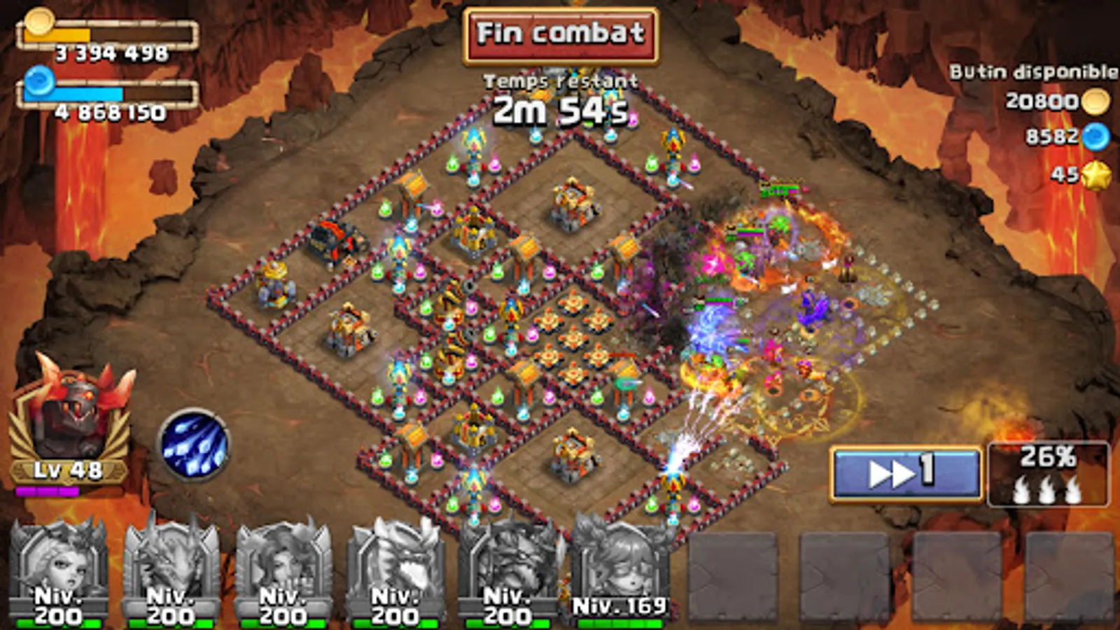 Filled with thrilling combat and fast-paced strategy, Castle Clash is a game of epic proportions! Command mighty heroes and summon mighty spells in your conquest. Build a magnificent empire and go down in history as the greatest warlord in the world!