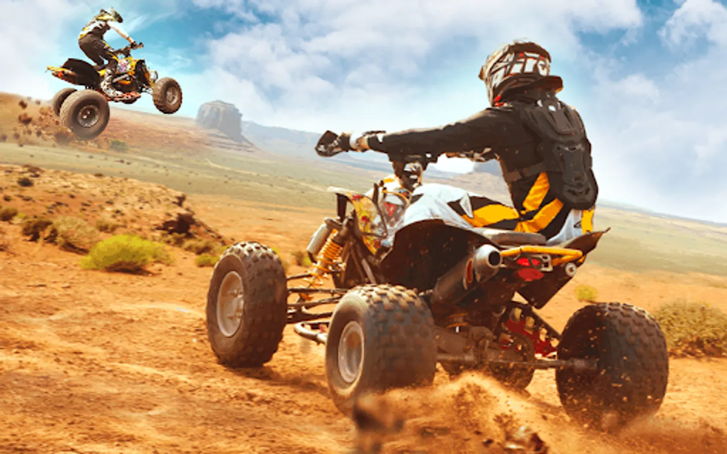 Experience the thrill of the impossible quad 4 wheel bike on your screen with Quad Bike. This four-wheeler bike racing game is unlike any two-wheeler bike game and allows bikers to easily perform quad stunts. Navigate the off-road quad simulator with care as you race on dirt tracks in this exciting cycling game. Kickstart your extreme ATV racing journey with 450 road bikes and test your free MTB skills on dirt bikes. As an ATV agent, the true highlight in hill motorcycle games is to drift the ATV 4x4 bike and avoid accidents. Engage in power sports and race through the desert on super 4x4 ATV quad bikes on dusty off-road trails. If your off-road ATV quad bike isn't speeding in the free motorcycle games of 2020, you can still enjoy superbike jumps with the off-road motorcycle free modes.