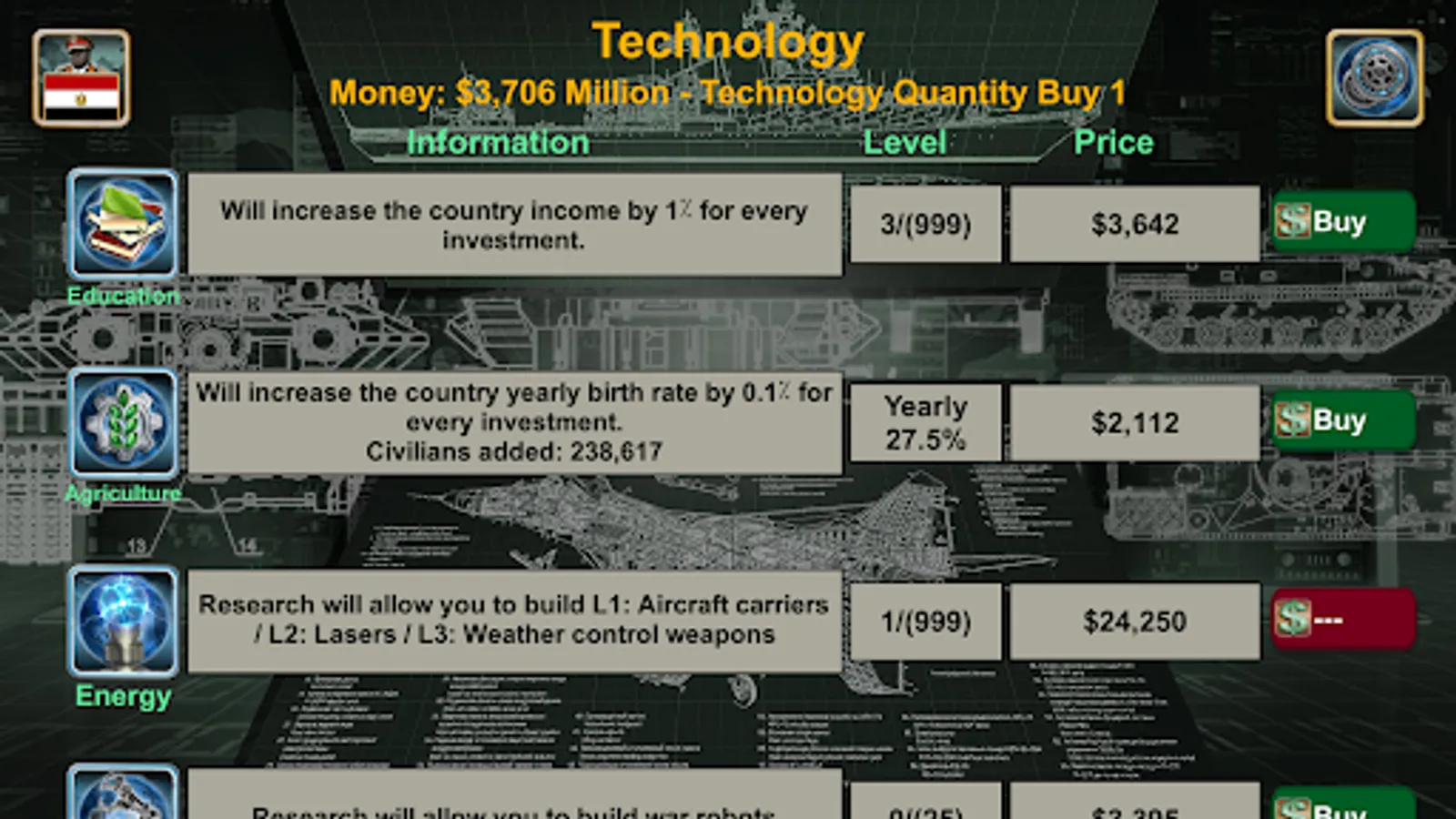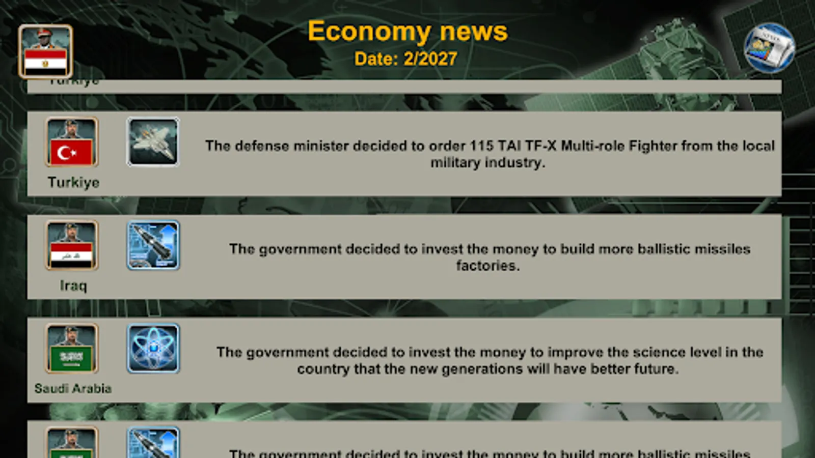 * Stay informed with World News (Economy, Relations, Spy, and War).