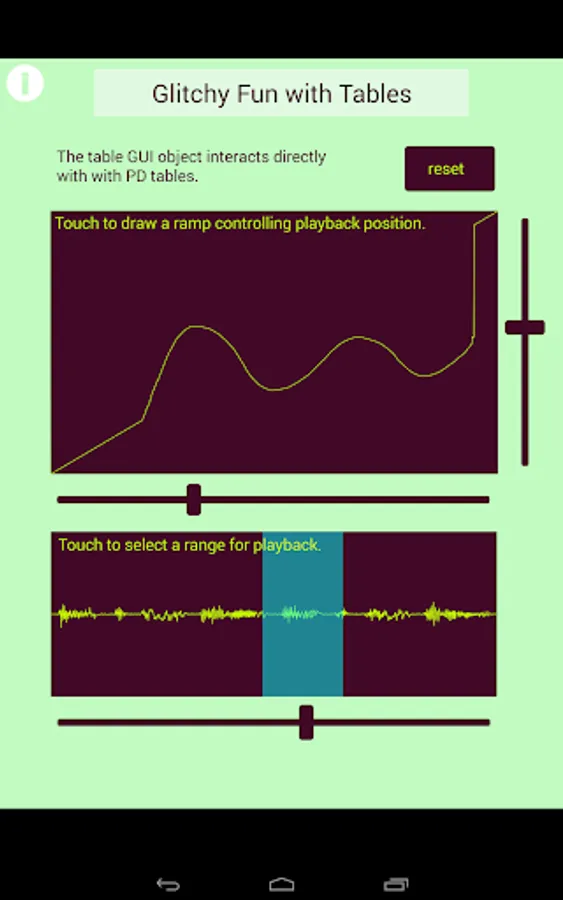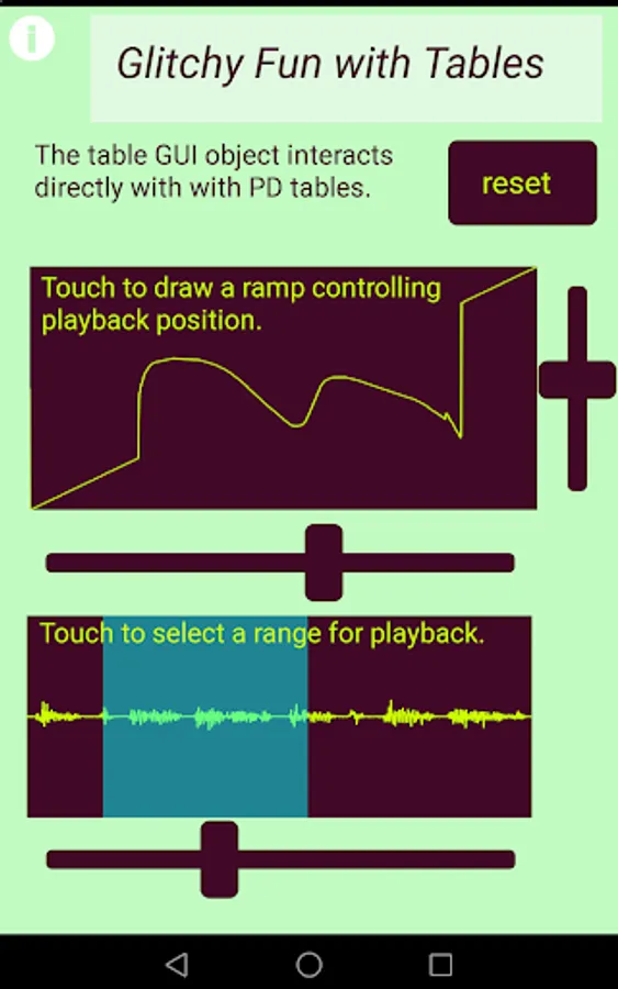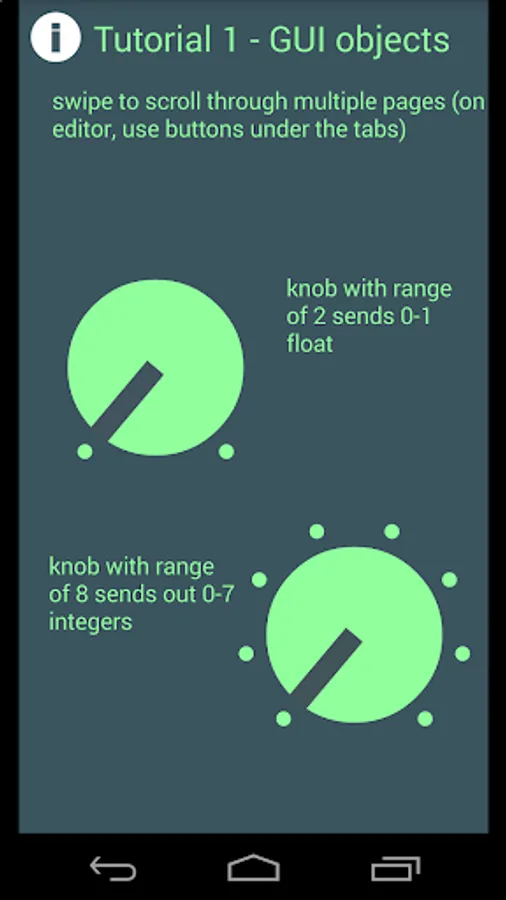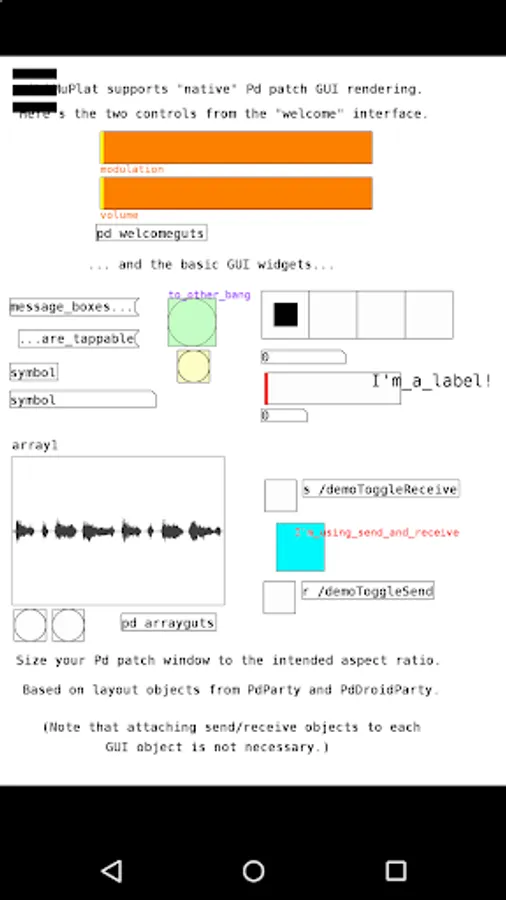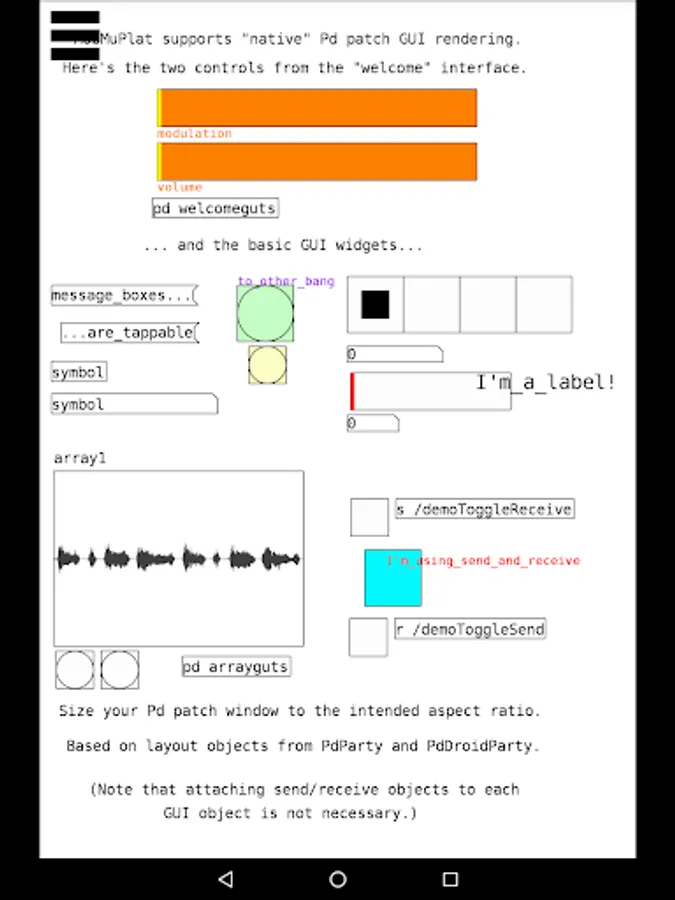 Second, either use the native PureData GUI, or create a graphical user interface (GUI) with the MobMuPlat Editor.
