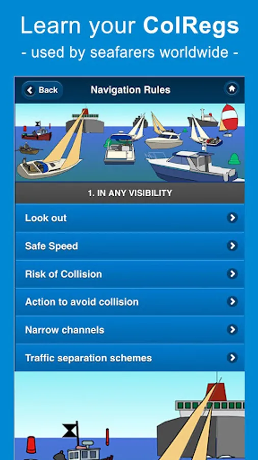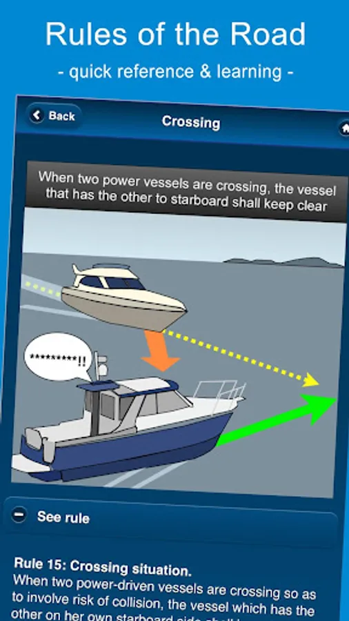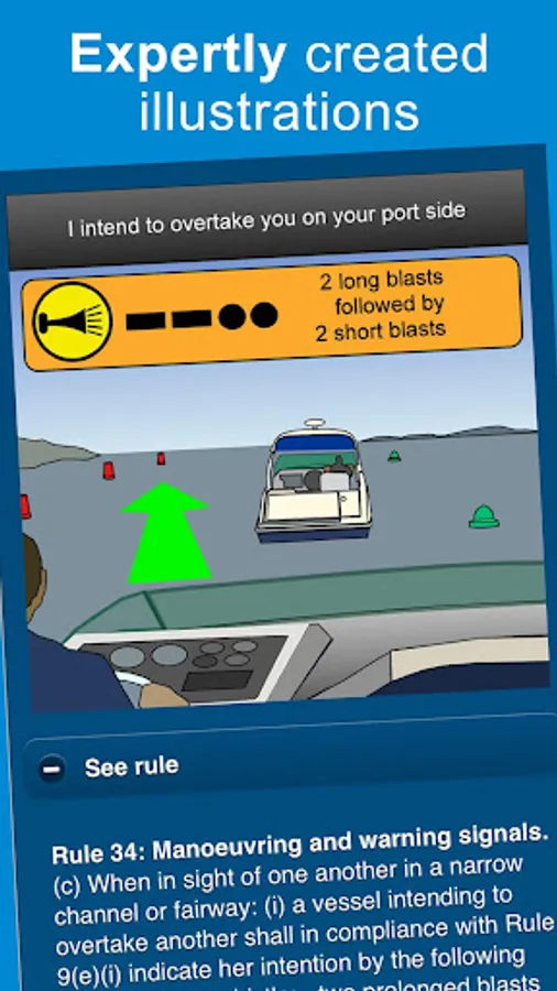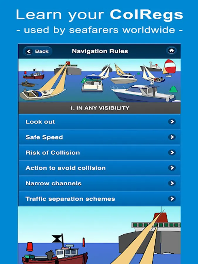 Whether out on the water or on shore, in daylight, darkness or poor visibility, simply open the app and search the rules in seconds to find the appropriate rule and definition.