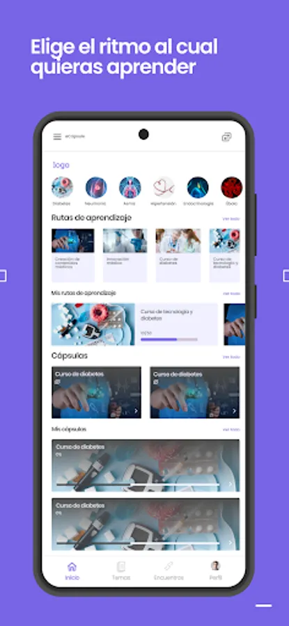 Quickly find the learning capsules of your interest, classified by thematic categories.
