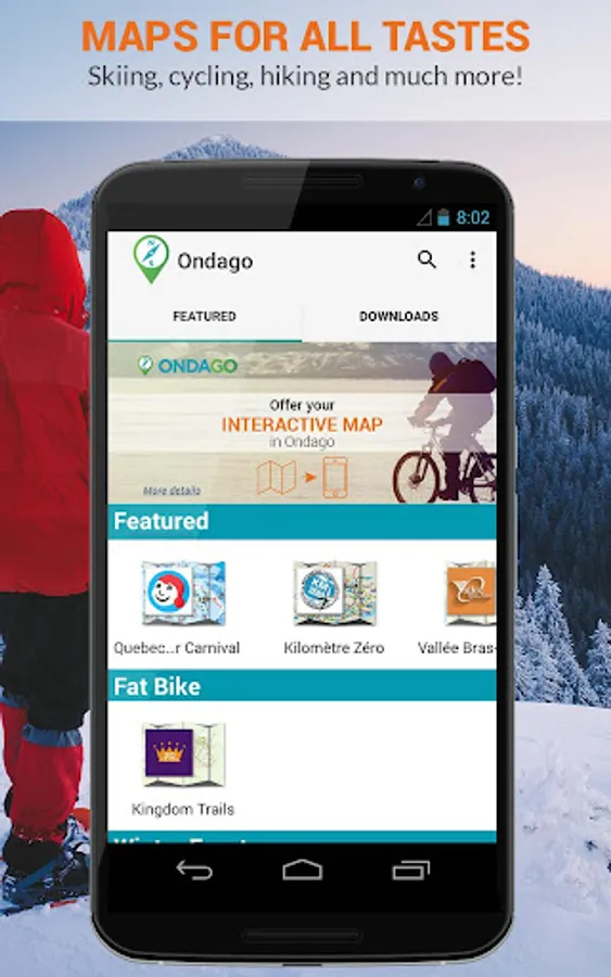 Ondago offers official maps of tourist destinations for all your adventures. It's the perfect combination of an official paper map and the ability to locate yourself on a digital map right in the palm of your hands!