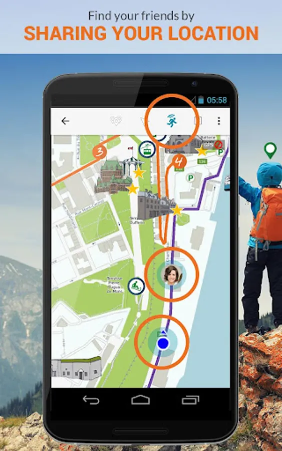 • Accurately geolocate yourself on a territory (GPS) even when offline.
