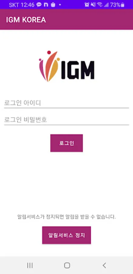IGM KOREA 회사에서 보내는 FCM(FirebaseMessagingService) 메세지 수신할 수 있습니다.