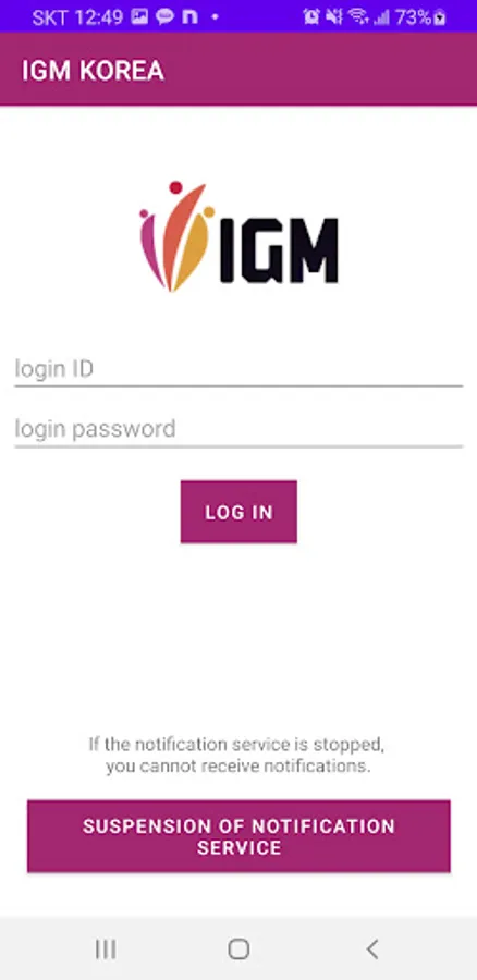 IGM Notification 앱은 IGM KOREA 회사의 회원으로 등록된 회원을 대상으로 IGM KOREA 회사에서 보내는 FCM(FirebaseMessagingService) 메세지 수신 및 거부하는 기능을 수행하는 앱입니다.