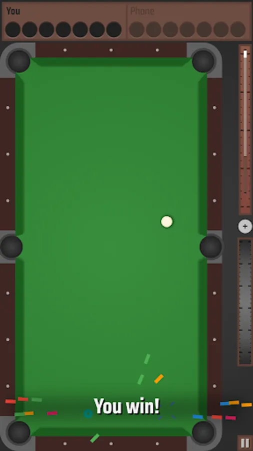 - "Play vs. Phone": Challenge your mind by playing against your own phone or tablet! Will you be able to beat the AI (Artificial Intelligence)? This is an ideal mode to practice your pool skills.