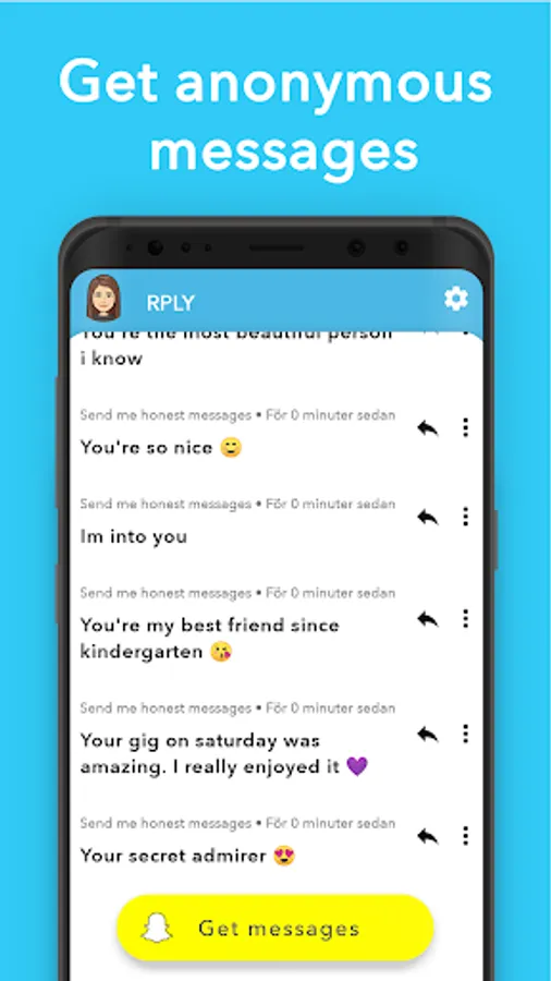 This app enables you to send snapchat anonymous messages and anonymous questions. Connect with your friends and see what they really think.