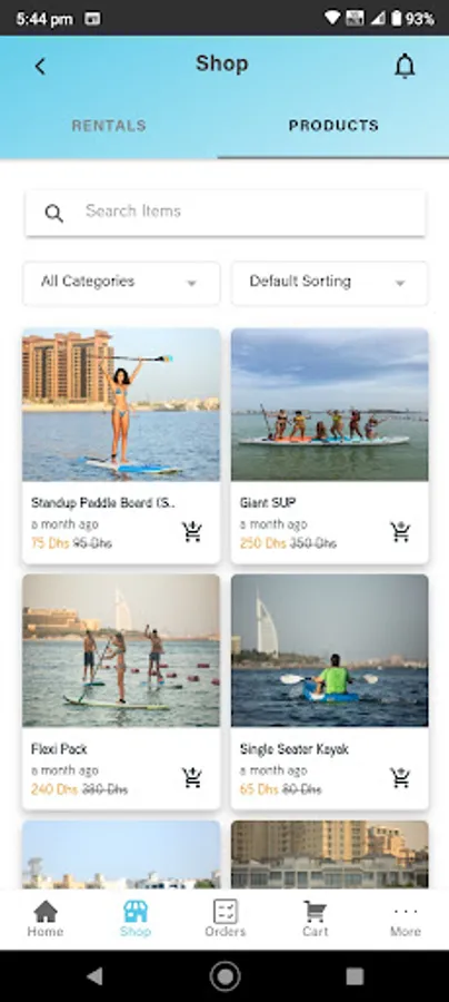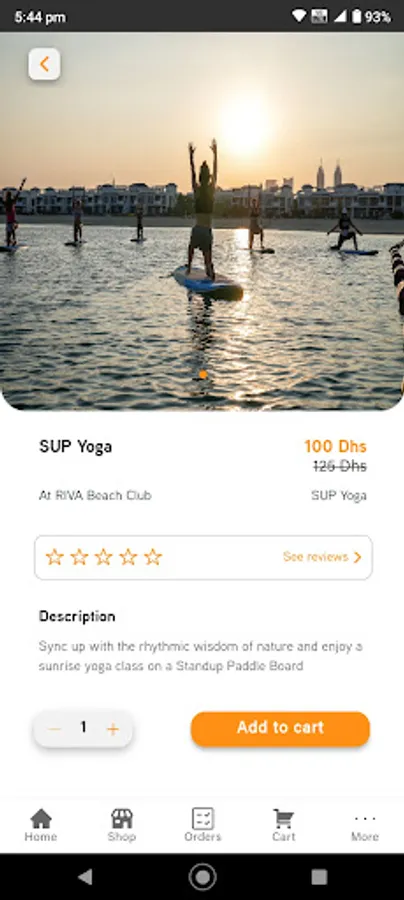 Make the most of your vacation in Dubai by catching a glimpse of the skyline during a stand-up paddleboard, fliteboard or kayak session. Witness the breathtaking views of the Burj Al Arab, the stunning houses of The Palm, and the famous Burj Khalifa. We are situated on the prestigious beach of The Palm Jumeirah inside the Riva Beach Club. You have the option to go out on your own or you may book a lesson and have our water sports coach guide you