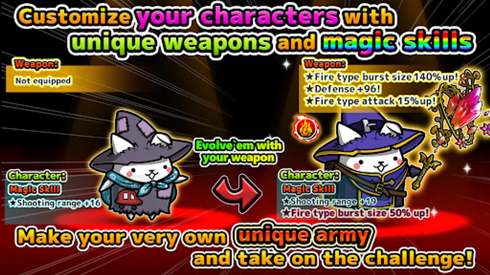 Mix and match your cats with different weapons and magic you gathered from your journey.