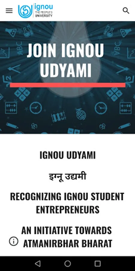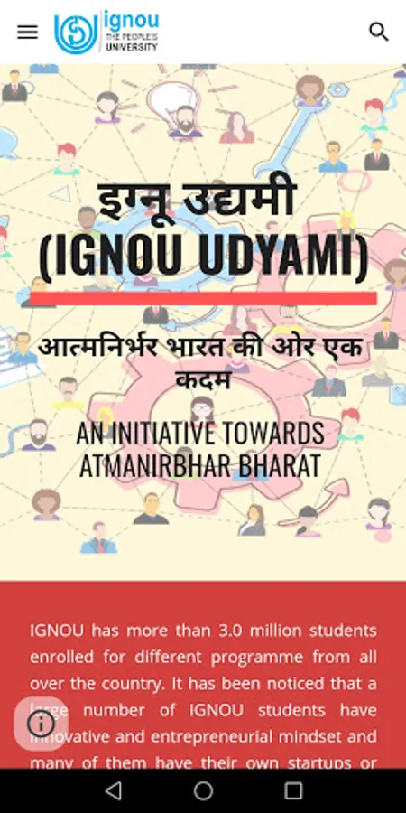 - The success stories of such innovator and startups by the Students of IGNOU including the Alumni will be showcased on the web portal IGNOU Udyami for motivating others.