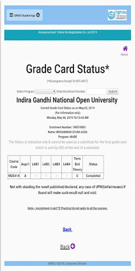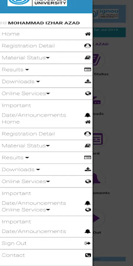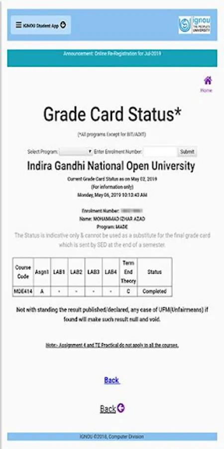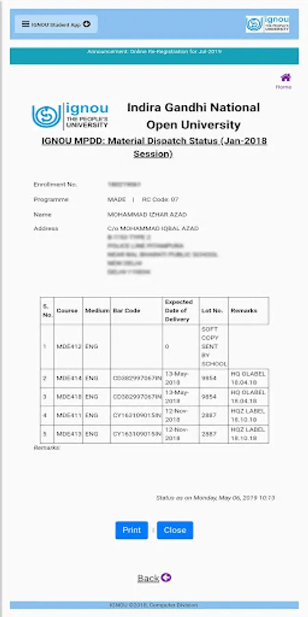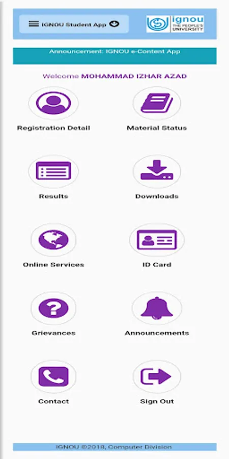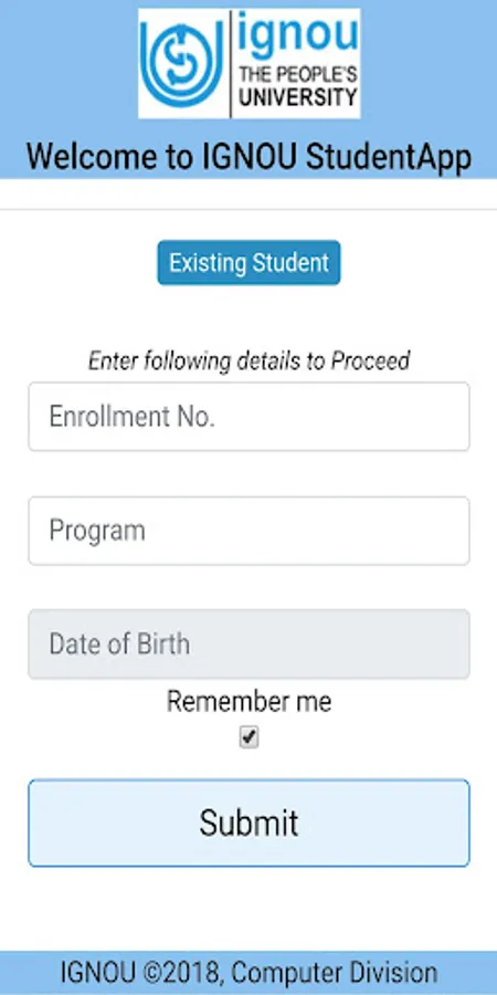 ‘IGNOU StudentApp’ Mobile App is an Official Mobile App of Indira Gandhi National Open University (IGNOU), New Delhi. This app is an ICT initiative of IGNOU to provide student related information to IGNOU learners and extending Technology Enhanced Learner Support Services to them. Existing Student may login to application by entering Enrollment No., Program & Date of Birth. After Log-in student may access various IGNOU student related services such as Registration Details, Material Dispatch Status, Identity Card, Grade Card, TEE Result, Hall Ticket and various other important links in one window.