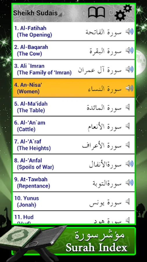 Navigating this quran book is very easy, select the surah for 114 surah of quran, select the ayah you want to read or listen. and start listen the holy book.