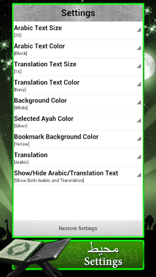 Change background color, Arabic or Translations colors of easy readability.