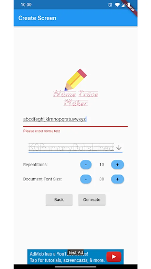 This app can generate printable worksheets for your kids. You can customise the letters, names or anything you want your kids to trace.