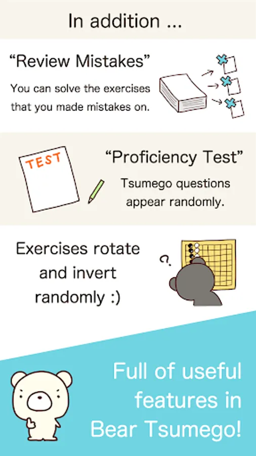*Please note that "Bear Tsumego" app is for users that know go rules and stones' life & death.