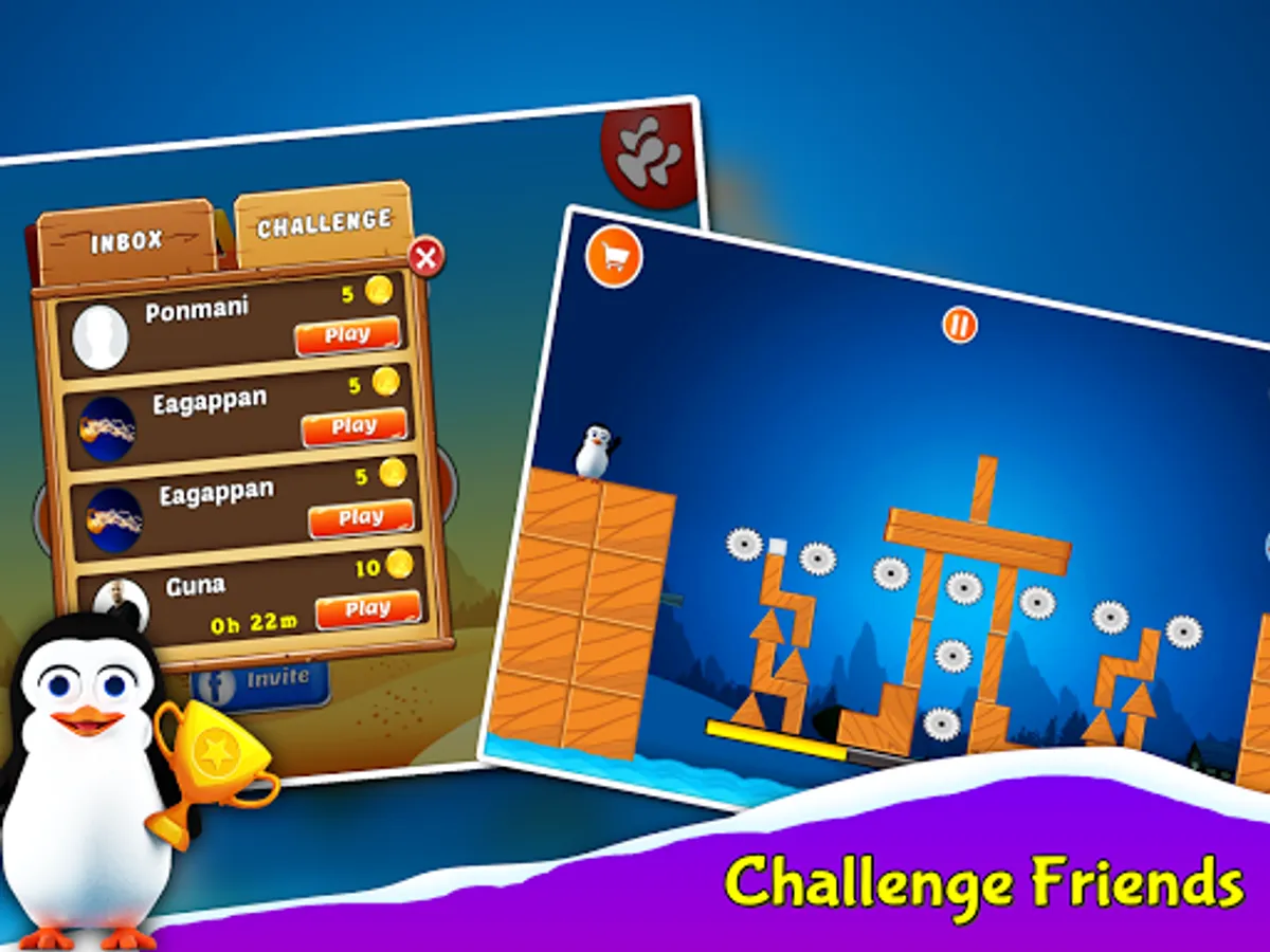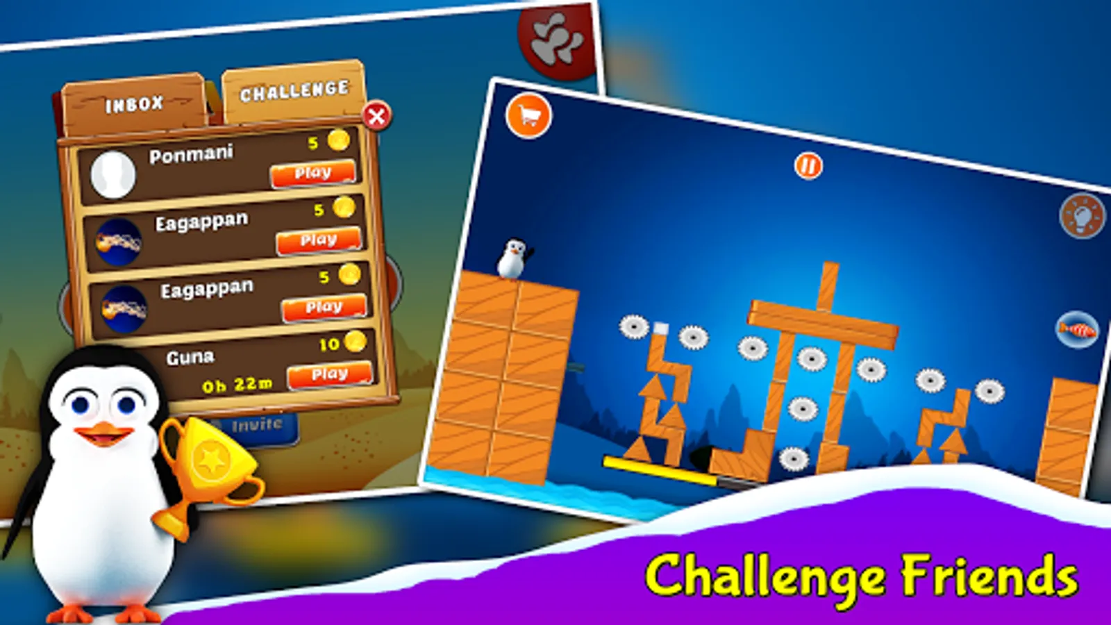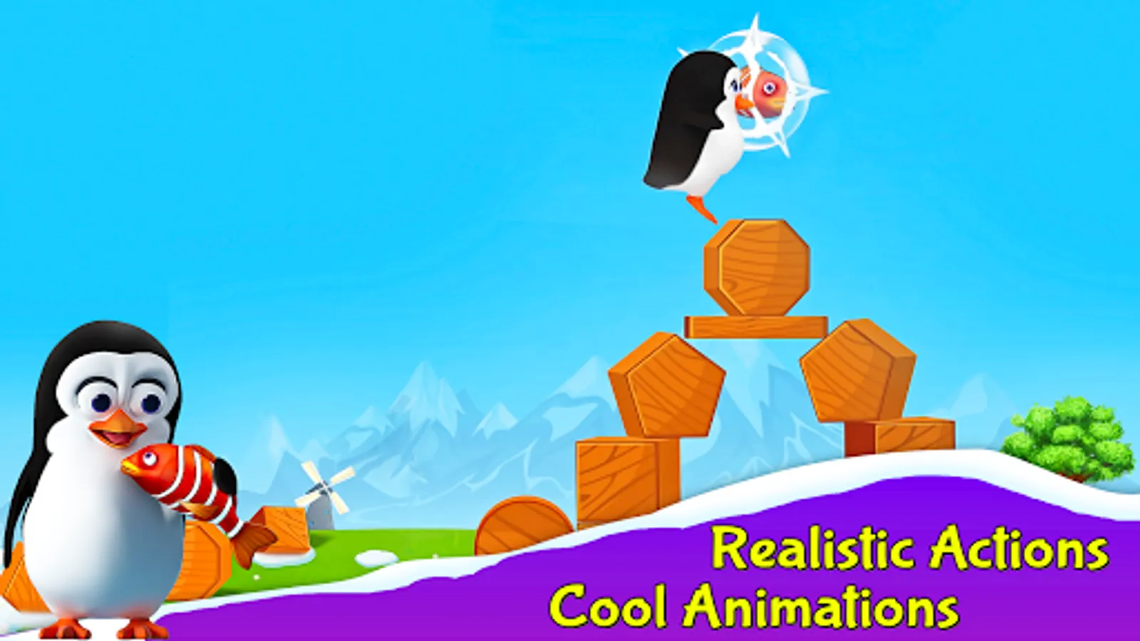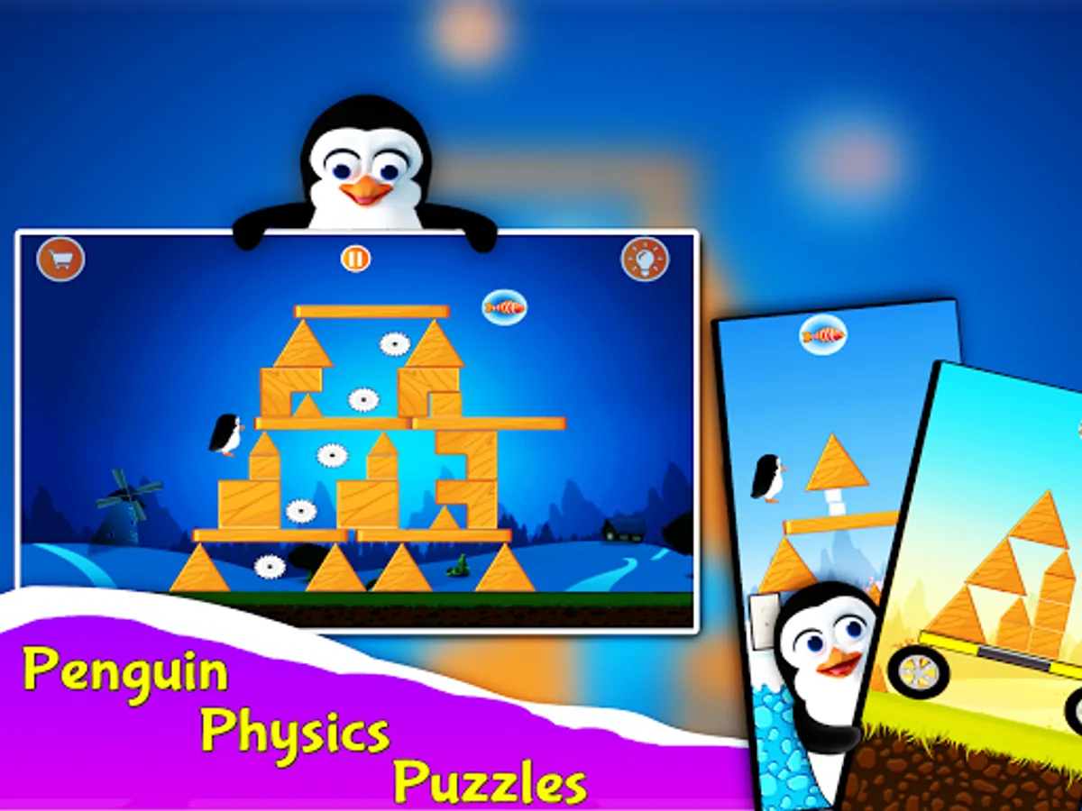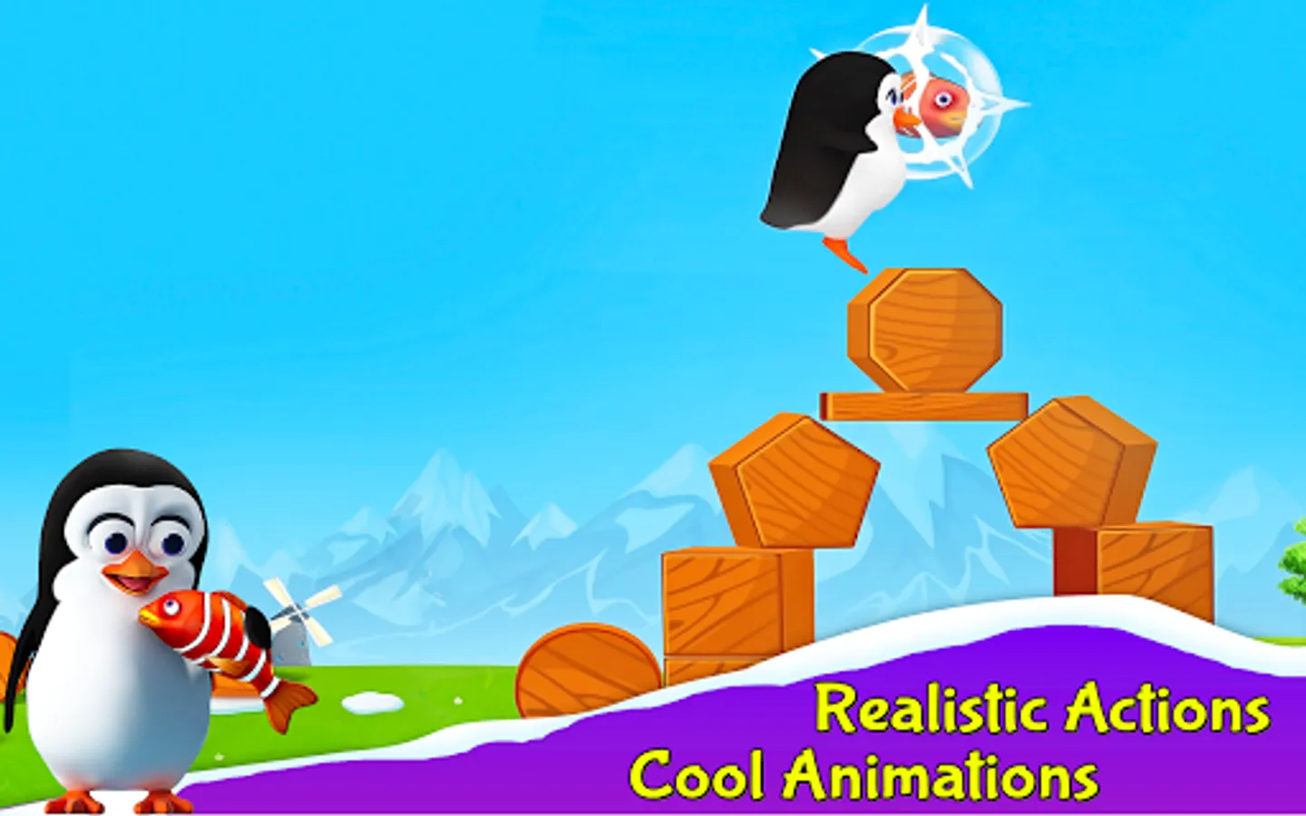 Penguin once released by tapping it has ability to find a path over the shapes and it will try its best to catch the fish.