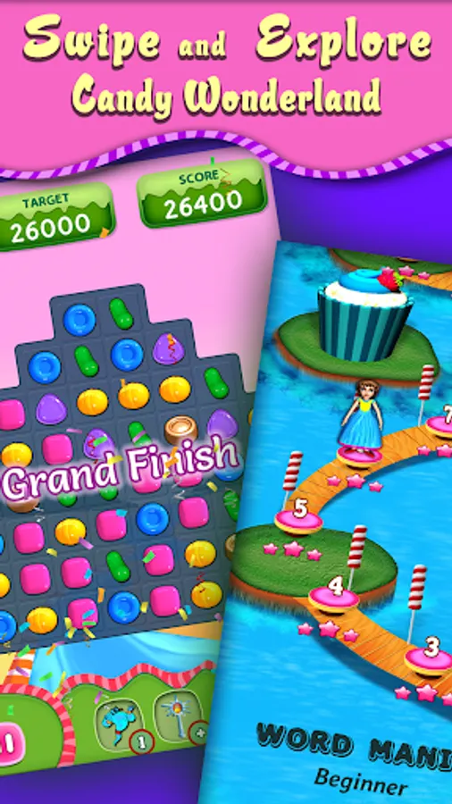 Step in to the shoes of a little girl lost in a candy wonderland, Swipe and smash candies in addictive puzzles as you explore it and choose your adventurous path to destiny.