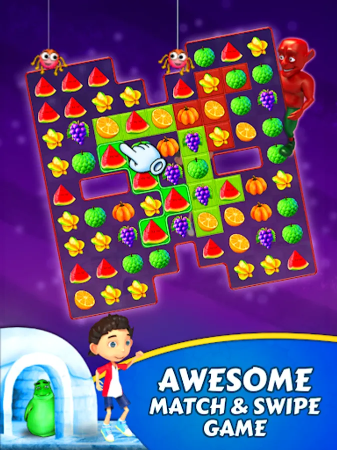 Play variety of addictive swipe fruit puzzles set by aliens to stop you from helping tom reach his home.