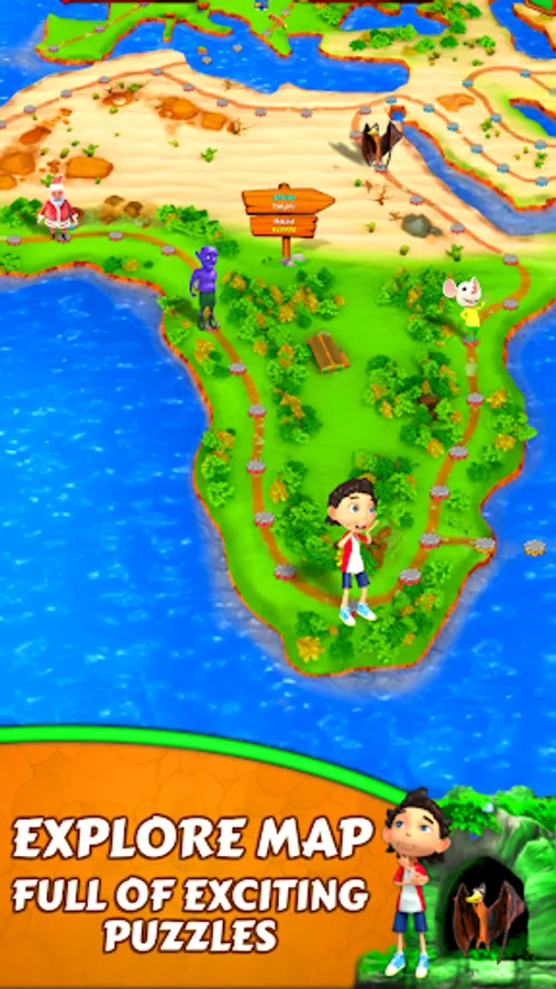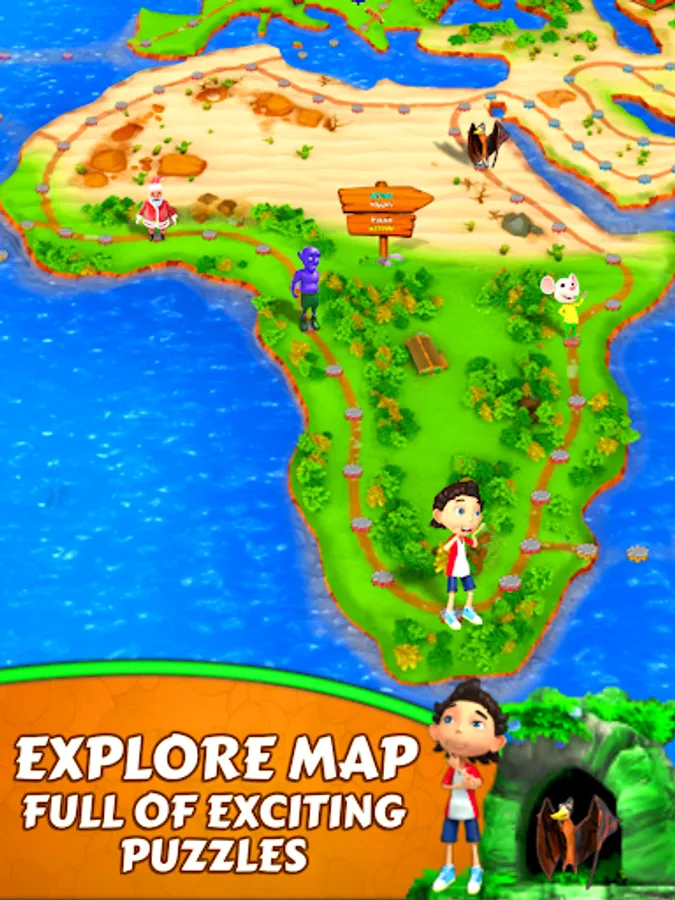 You start from southern tip of South America and travel through paths by completing levels on them.