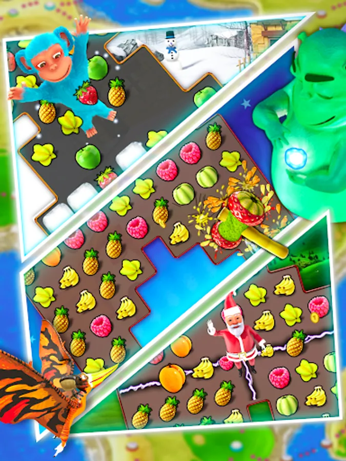 Amazing tap tap fruit chain forming games spread across all continents of the world.
