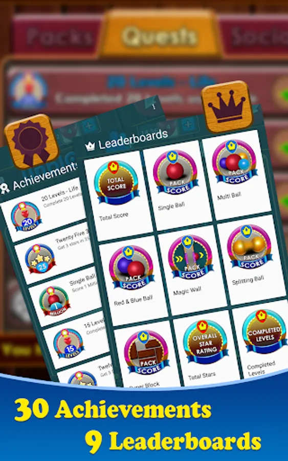 Single Ball, Multi Ball, Red & Blue Ball, Magic Wall, Splitting Ball & Super Block game packs.