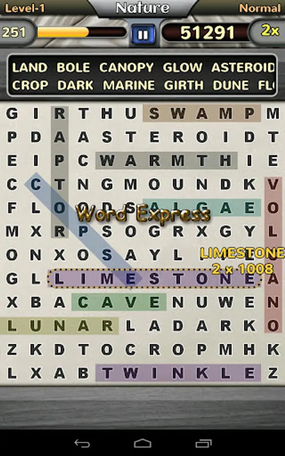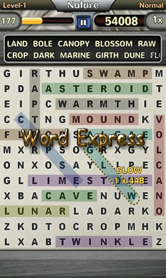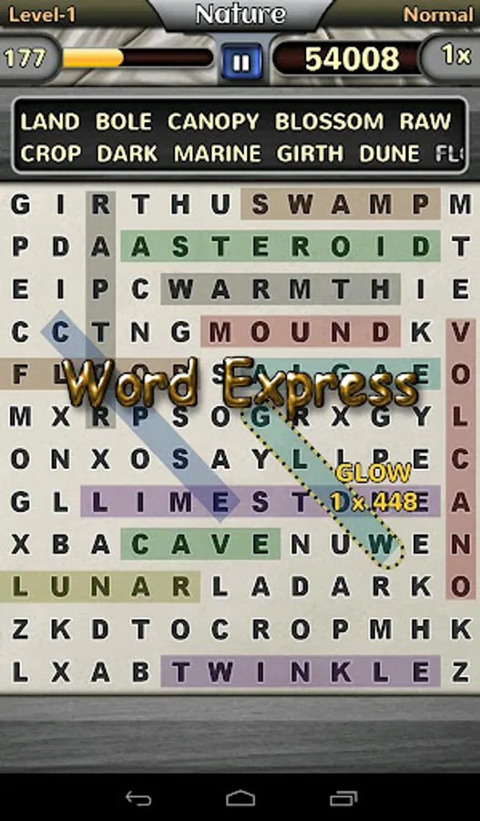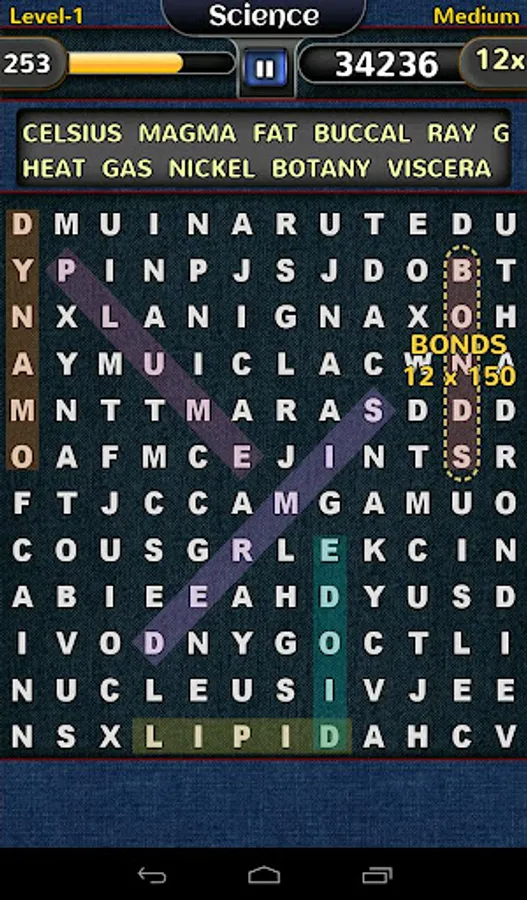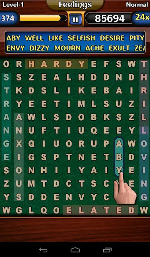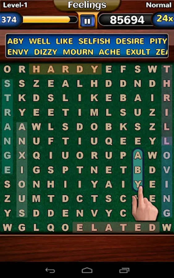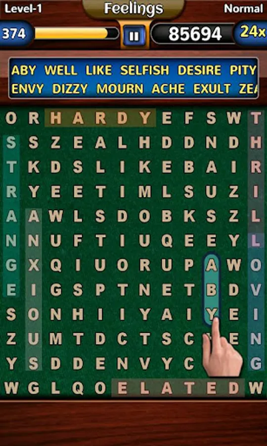 - Find all the words in the list to complete the level.