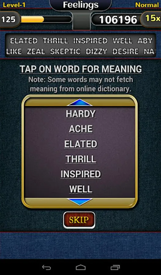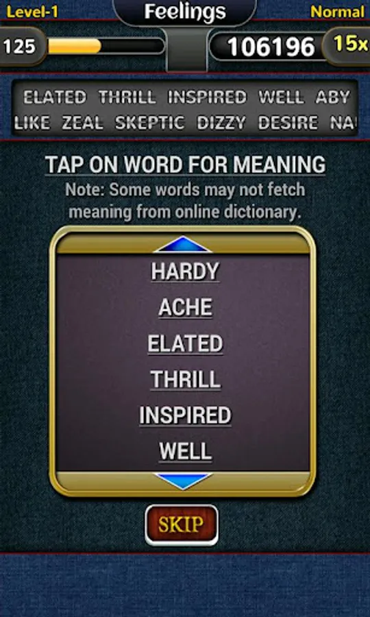 Unique Words with meaning : All the default game packs have unique non repetitive words with access to the meaning of them after level completion.