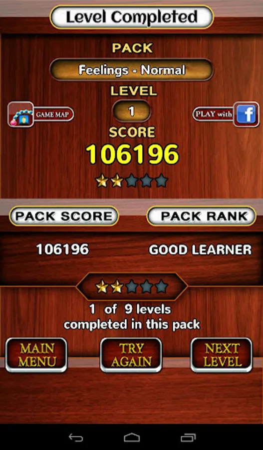 Players can play in three different game modes : Play with facebook friends, Play offline & Random level play.