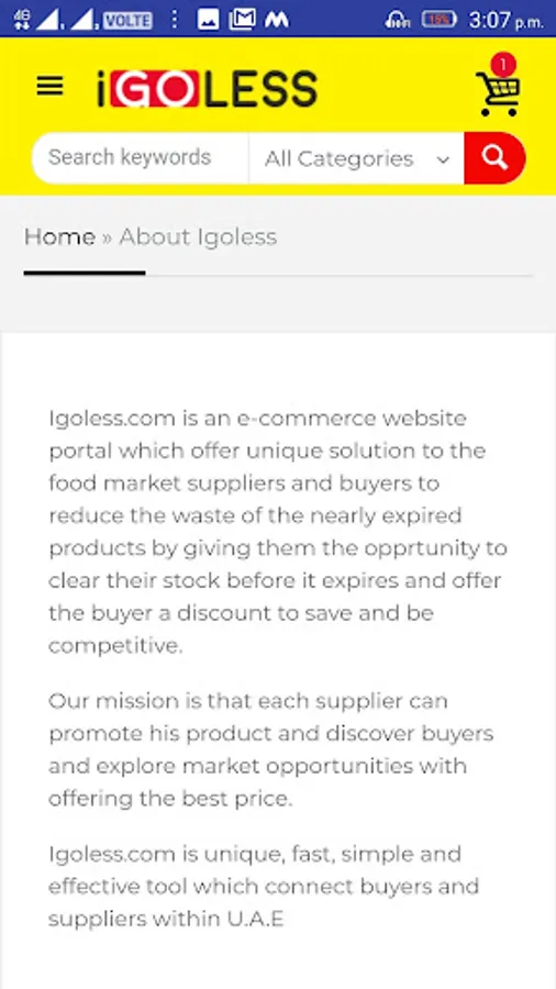 Igoless.com is an e-commerce website portal which offer unique solution to the food market suppliers and buyers to reduce the waste of the nearly expired products by giving them the opprtunity to clear their stock before it expires and offer the buyer a discount to save and be competitive.
