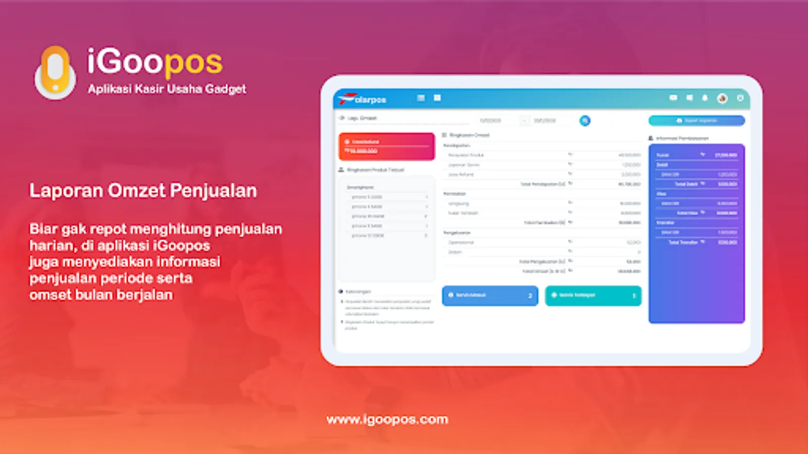 Online Cashier Application for Mobile/Gadget Business. Equipped with special needs such as Exchange Add, Set Stock IMEI / SN, Check Product Warranty and Service / Repair. Not only POS but iGoopos is also more complete with other Outlet management features such as Customer Management, Employee Management, Product Catalogs and many other features