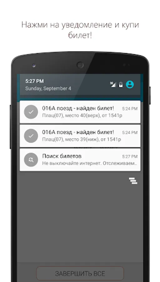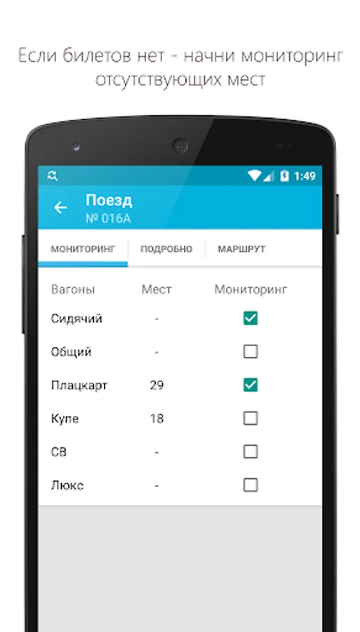 The application provides the ability to track you are interested in tickets when the tickets are bought, it is more likely that someone will hand over the ticket. With this program you will be able to track this point. This application is a shell to the official website of the Russian Railways. It connects to the site every minute and checks the availability for you. Once the desired ticket appears, you will receive a notification about it. Everything happens in the background, so you can safely go about their business, while the program is running.