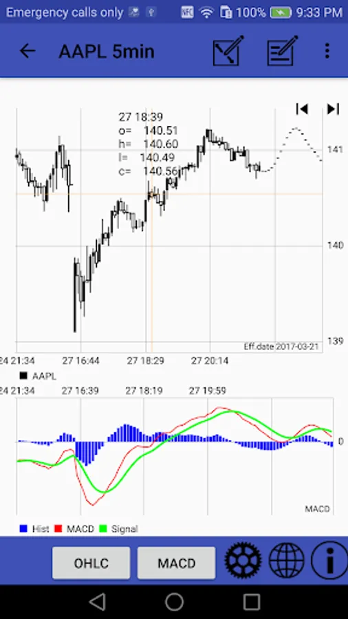 The method is based on assumption the chart consists on periodic waves of different frequencies. Fourier analysis allows to find waves' frequency with most significant amplitudes and construct prediction based on them. And judging by backtesting it gives not bad results! So don't lose a chance to look into the future, simply download Fourier Predictor app and enjoy! You can download and use it for free during 30 days trial period. Other awesome features includes: * Get daily, weekly, monthly or intraday charts for Yahoo Finance listed symbols; * Save stock symbols in a portfolio by groups * regular, logarithmic and Heikin-Ashi OHLC and candle stick charts * Comprehensive indicators set: up to 6 xMA lines, Bollinger Bands, Fibonacci Bollinger Bands and retracing, SAR, Price Channel and Elliott X-Waves; * Comprehensive oscillators set: MACD, Chaikin, BB%B, Slow and Fast Stochastic, RSI, CCI, ADX, MFI, Standard Deviation, Elliott Waves, QQE, Wiliams%R * Ability to adjust trend dates * Stocks and data sourced from Yahoo Finance website; realtime data sourced from GoogleFinance if available.