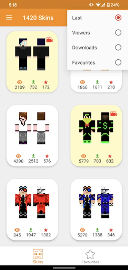 What are the popular skins you can download? With capes, entity 303, with white eyes, school skins, military, skins for boys, girls, babies, zombies, in swimwear, kawaii, cute girls, superheroes, camouflage, mobs, hot skins, streamers, school, horror skins, noobs, trending skins, top youtubers, in bikini, anime, scary skins.