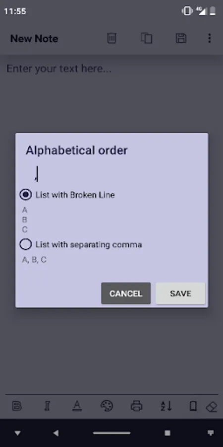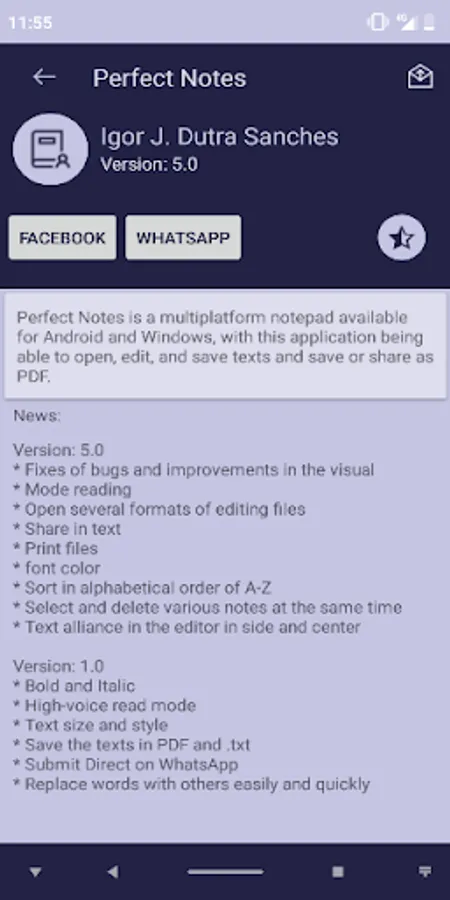 Create notes in a modern look and save them in text or PDF, with many functions the application can print, add font color, text size and style, sort from AZ a list of names, send in WhatsApp and much more ... Download right now