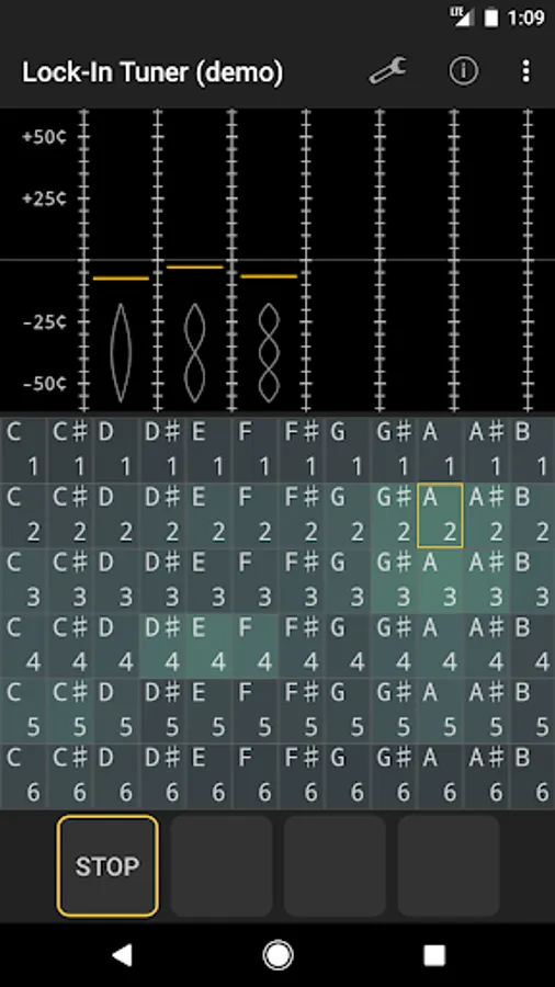 This demo version shows only first 3 harmonics and has some other limitations, but does not contain tracking ads or any other types of malware. I respect privacy of people who use my apps, including free ones, on their devices.