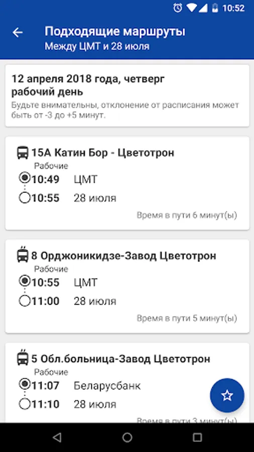 The application provides a schedule of buses and trolleybuses of Brest. It allows you to search for suitable routes between two given stops.