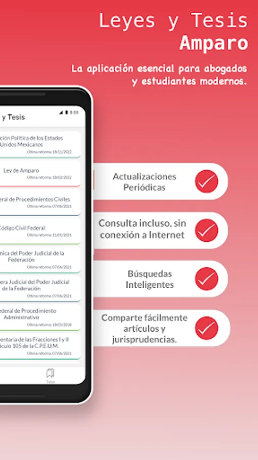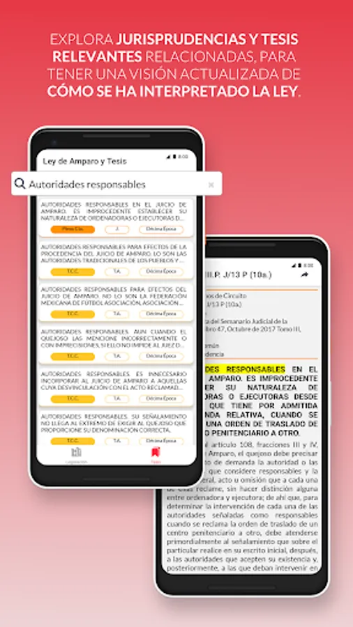 Download "Laws and Theses" today and discover the comfort and power of having the Mexican Federal Legislation and Jurisprudence at your fingertips. Don't waste any more time and start taking full advantage of this essential application for legal professionals and anyone interested in legislation in Mexico!