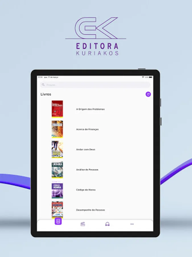 The Editora Kuriakos application is a reading platform for the different materials acquired, such as e-books, messages, music and films.