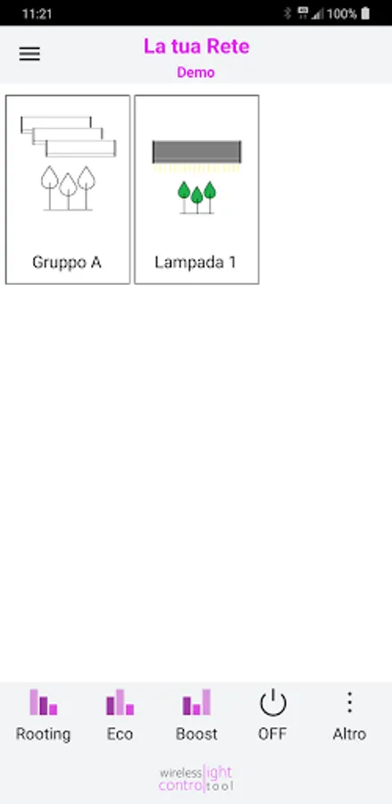 With Igrox® Connect you can set a dimming level to your liking or choose between 3 presets: Rooting for the rooting phase, Eco for the vegetative phase in energy saving mode or Boost, to push the flowering results to the maximum. Once the desired setting is defined, the lamp will keep it in memory until further commanded, allowing you to manage the light intensity for the different growth phases from your smartphone.