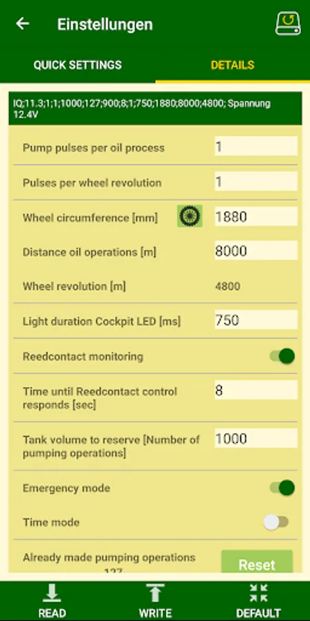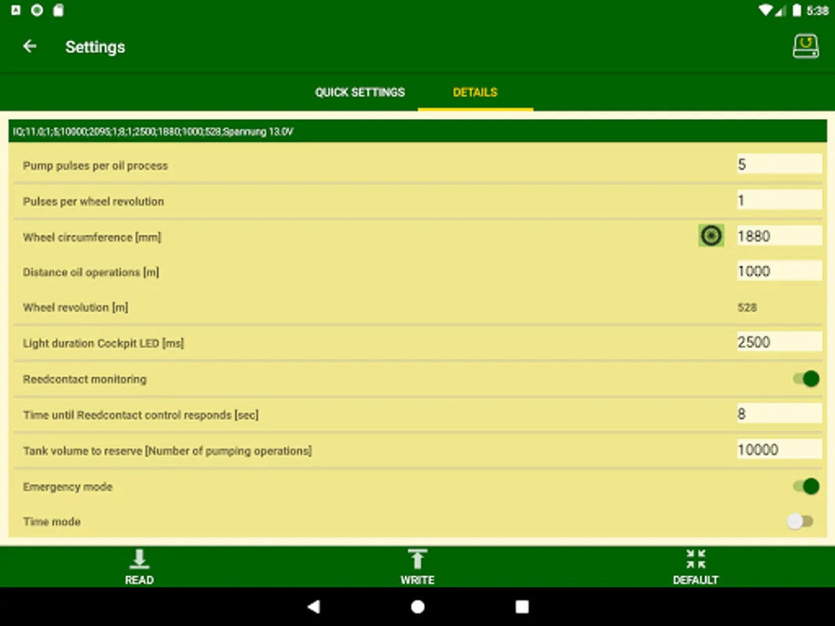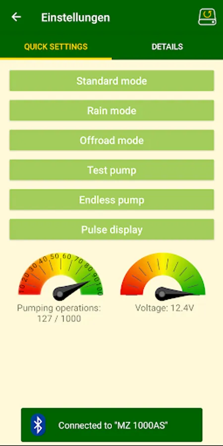 This software connects via Bluetooth with the chainoiler. Then you are able to configure the parameters of the oiler. Additional there are some quick settings like operations modes and test functions.