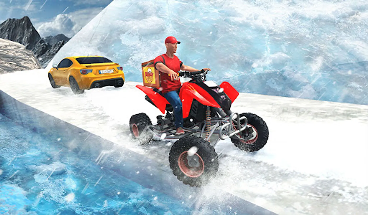 Multiple quad bikes to unlock in the best snow mountain pizza delivery games