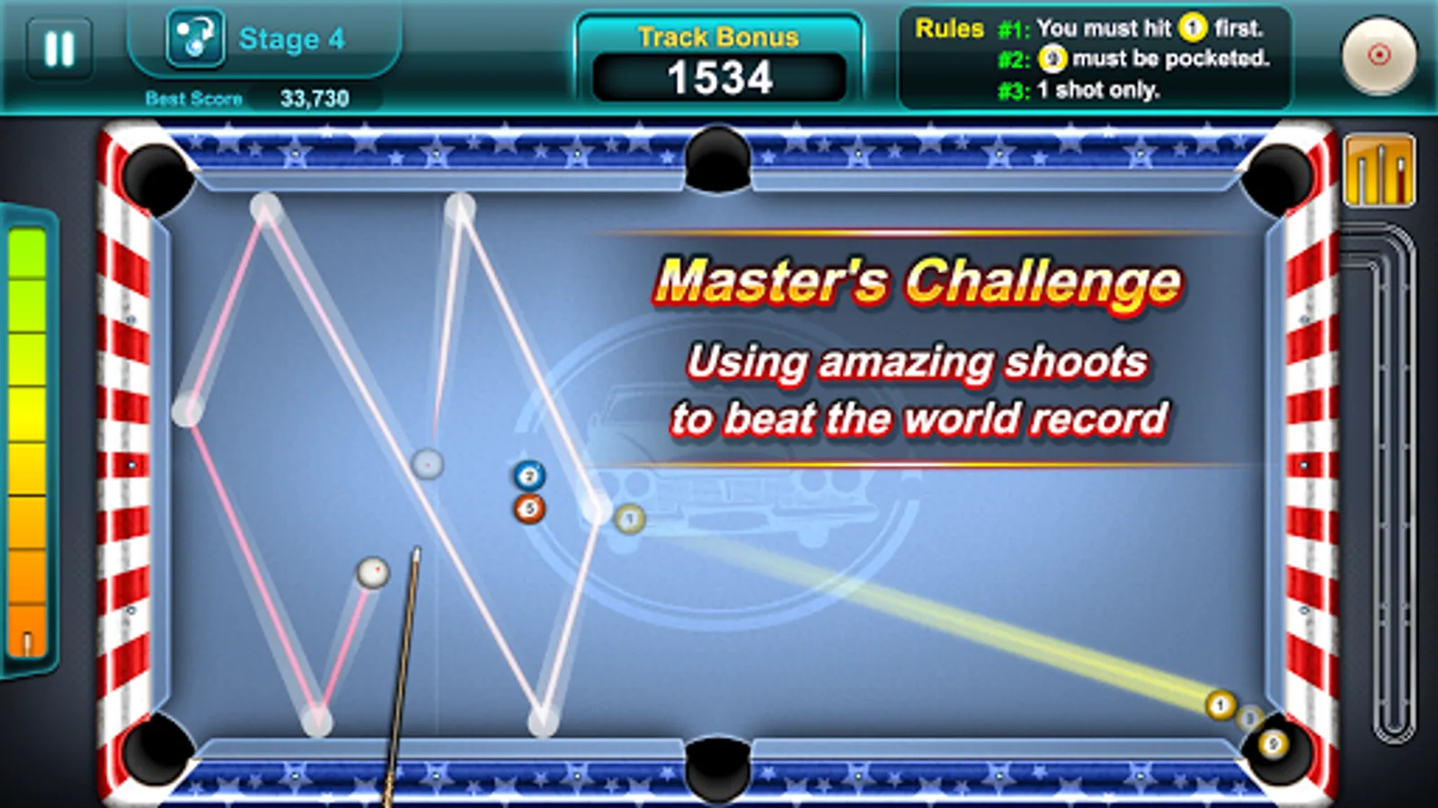 - Special trick shot challenge in various stages. Play without stress and claim your rewards stage by stage!