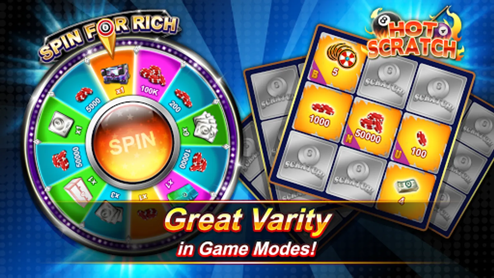 - Free to play! Login every day for free chips, treasure chests and other rewards including cues!