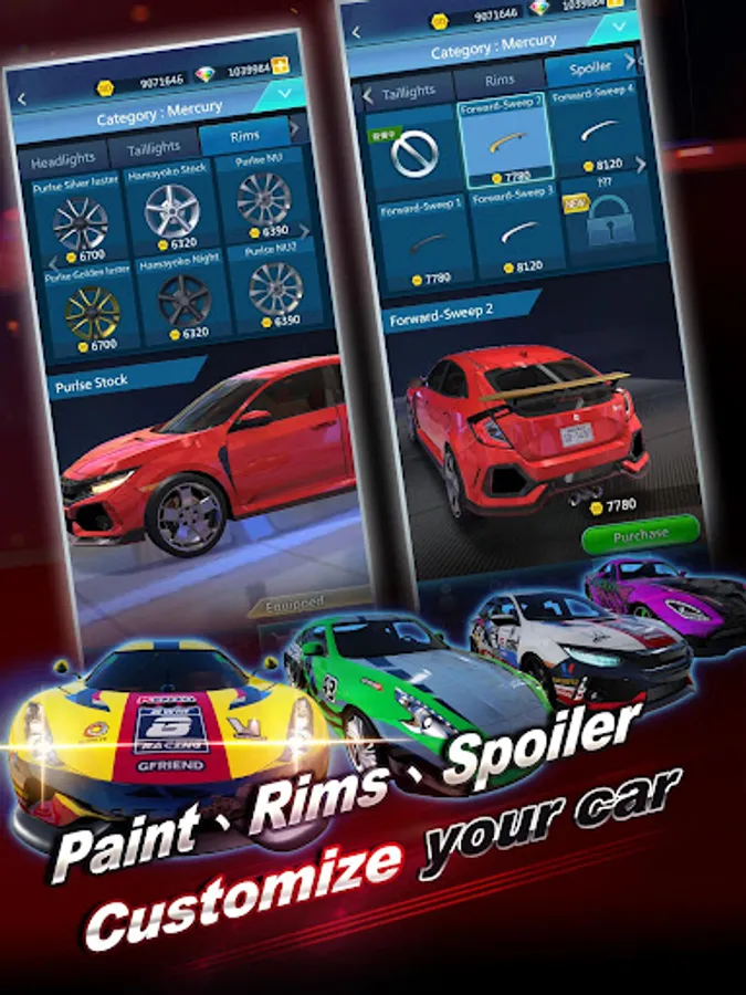 Over 100 car mods you can use to customize your cars with. Create your own personal dream car any where and anytime using your app!