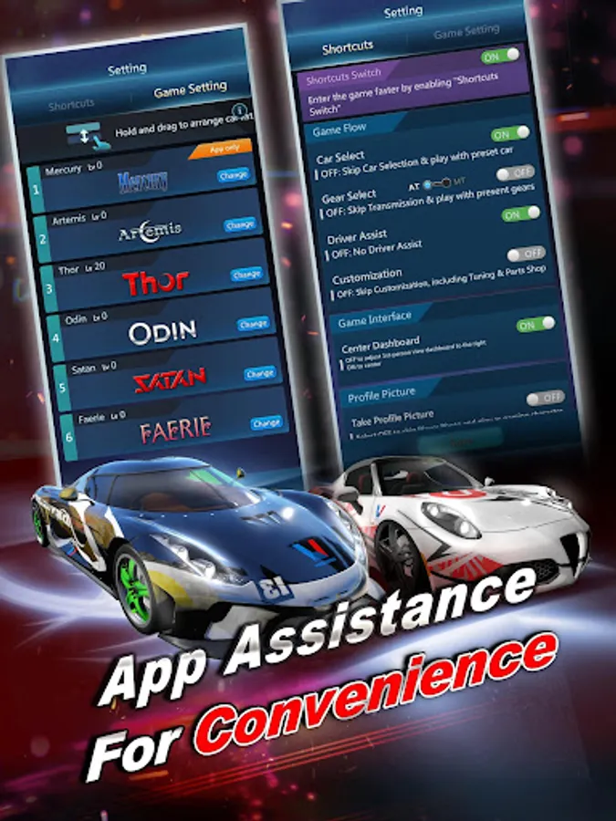 Quickly prepare for your races by configuring your car list, transmission mode and N2O type!
