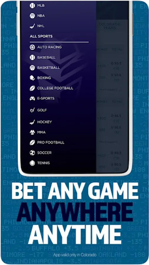 Get a free bet after registering and making your first deposit. Enjoy mile high action with this safe, secure and easy-to-use app where you can win cash by betting your favorite teams and sports including football, basketball, hockey, golf, soccer, tennis and many more.